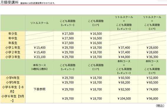 そのため選択肢がほとんどなく、必修の教材代やテスト費が年間を通じて積み上がり、月謝にプラスされます。